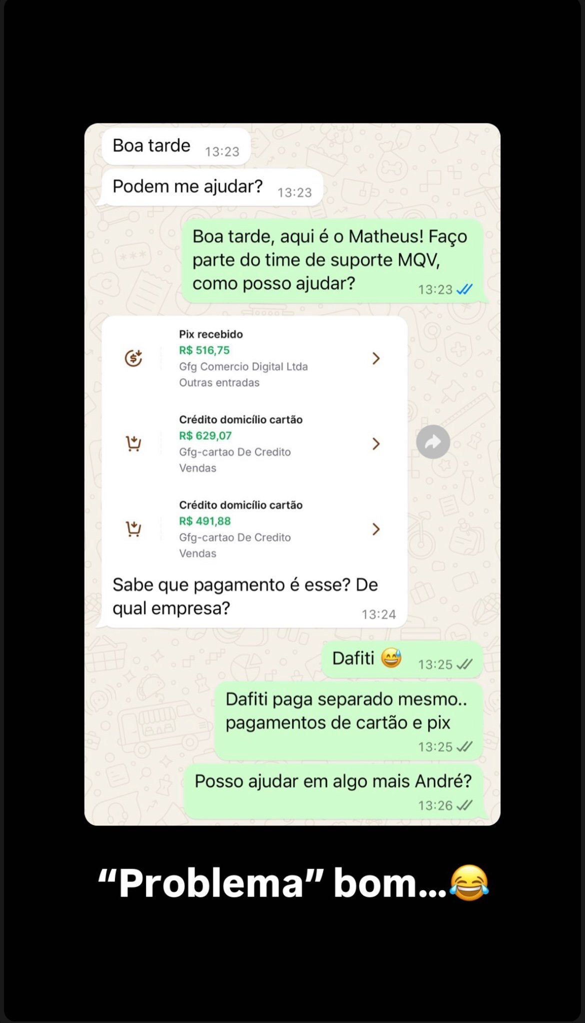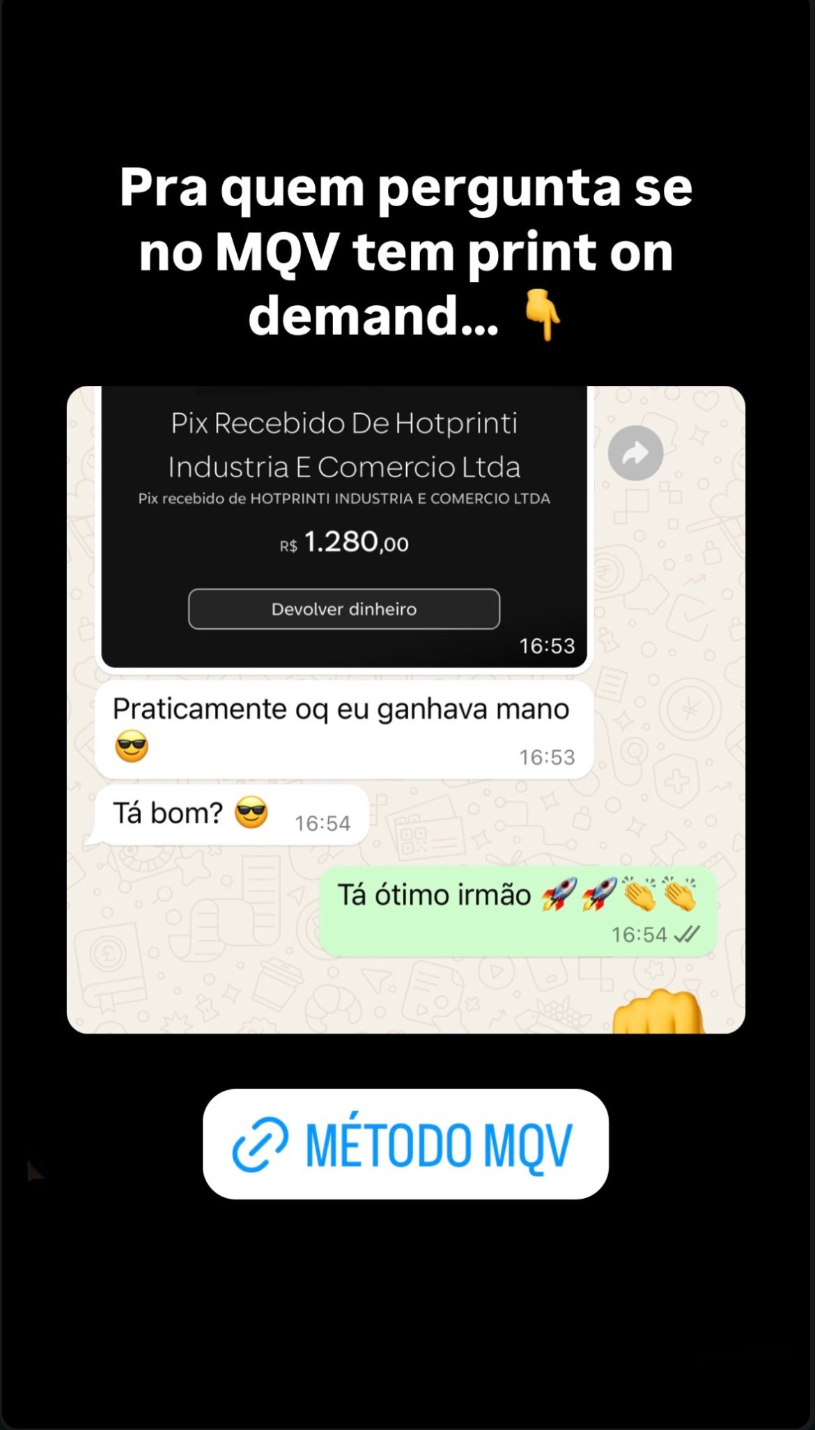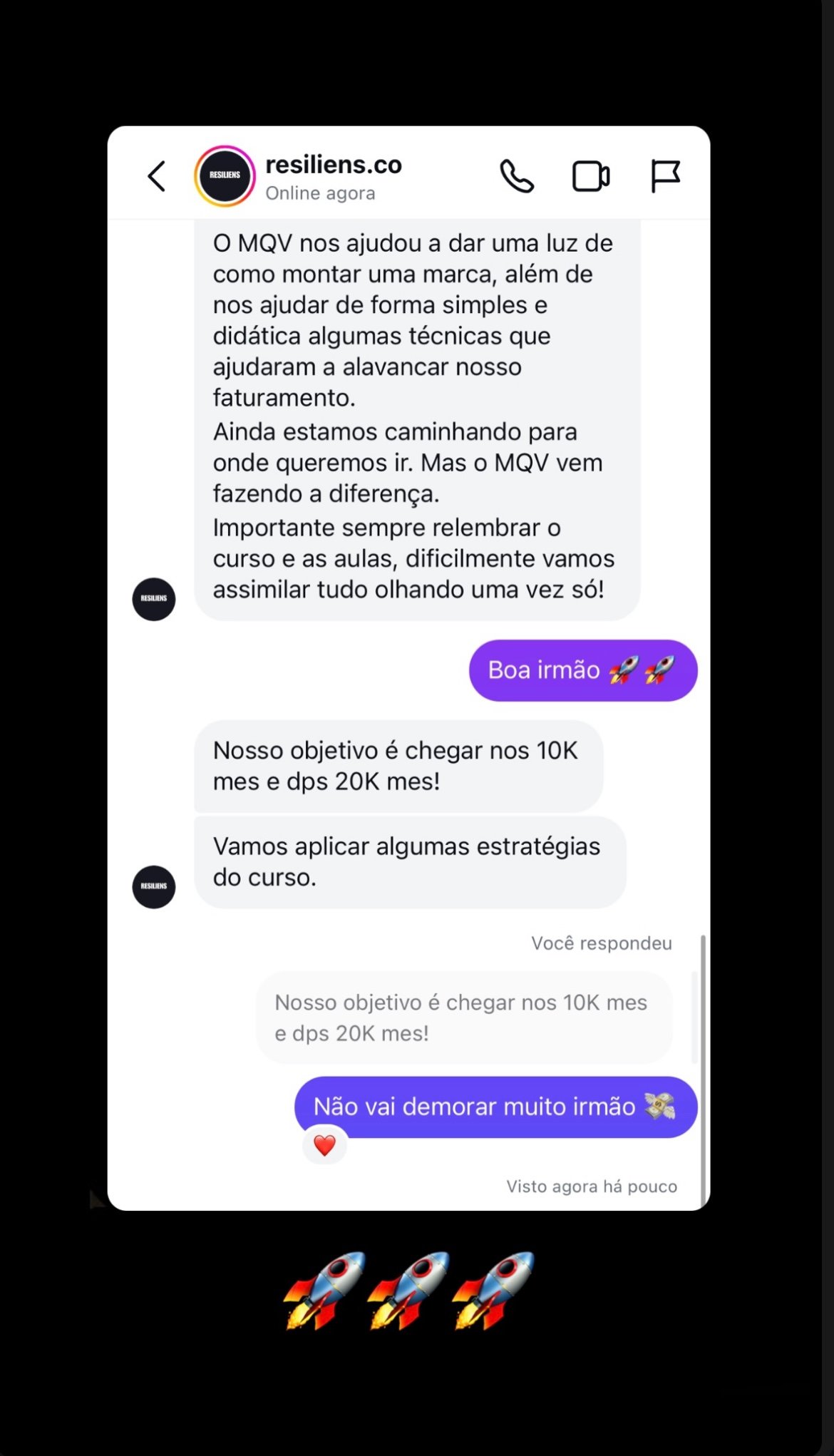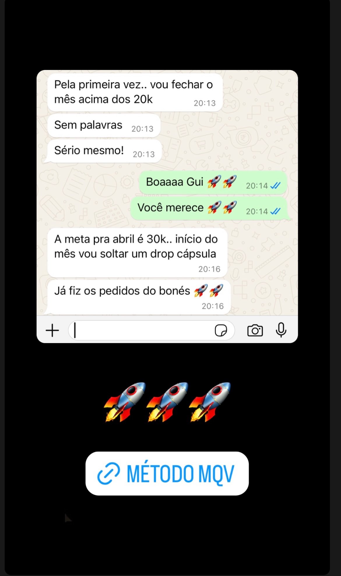 No Método MQV, não estou apenas prometendo ensinar a vender online; te entrego um treinamento testado e aprovado vários negócios que já ajudei, pronto pra te dar velocidade e direção certa desde o primeiro dia.
